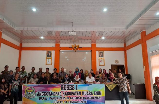 SUMSELONLINECOM, -Muara Enim 29 Januari 2025 – Anggota DPRD Kabupaten Muara Enim dari Daerah Pemilihan (Dapil) 1 menggelar reses secara mendadak di Aula Kantor Kecamatan Ujanmas, Kabupaten Muara Enim, pada Kamis (29/01/25). Acara ini juga menjadi momen silaturahmi dengan seluruh pegawai kecamatan.