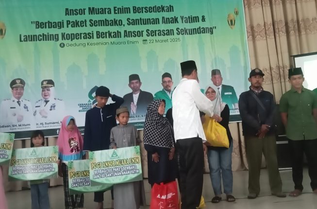 SUMSEL ONLINE COM, Muara Enim – Pimpinan Cabang Gerakan Pemuda (GP) Ansor Kabupaten Muara Enim mengadakan kegiatan sosial keagamaan bertajuk Ansor Muara Enim Berbagi Paket Sembako, Santunan Anak Yatim & Launching Koperasi Berkah Ansor Serasan Sekundang, yang berlangsung di Gedung Kesenian Kabupaten Muara Enim pada Sabtu, 22 Maret 2025.