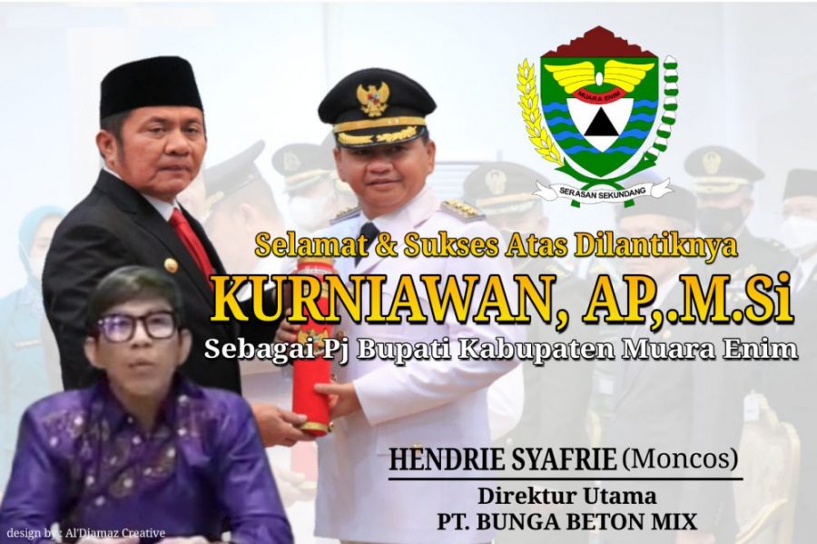 atau yang akrab disapa Bung Moncos, yang sangat menyambut baik serta sangat mendukung atas telah dilantiknya Kurniawan AP,MSi sebagai Penjabat Bupati Muara Enim dalam rangka untuk meneruskan program Muara Enim yang Sehat Mandiri dan Agamis serta Sejahtera di Bumi Serasan Sekundang yang kita cintai ini.