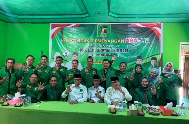 SUMSELONLINECOM, Muara Enim, 26 Oktober 2024 – Dewan Pimpinan Cabang (DPC) Partai Persatuan Pembangunan (PPP) Muara Enim menggelar konsolidasi pemenangan untuk pasangan calon Bupati dan Wakil Bupati Muara Enim nomor urut 3, HNU-LIA, di kantor DPC PPP Muara Enim, Sabtu (26/10/24).