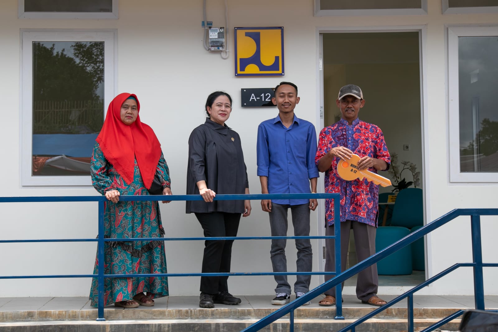 Secara simbolis, Puan menyerahkan kunci rumah bantuan hunian tetap (huntap) kepada warga bernama Ujang Mahmudin yang mendapat hunian di Blok A No 12. Ia pun masuk ke bagian dalam rumah untuk mengecek tempat tidur, dapur, hingga kran air.