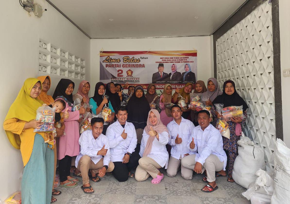 Ponira ,SH, M.Kn, mengatakan, peringatan HUT Partai Gerindra Ke-15 kita peringati bersama masyarakat, dan kita manfaatkan saling berbagi dan saling membantu masyarakat yang membutuhkan dengan menyalurkan 15 paket bantuan usaha kecil pada masyarakat serta penyaluran 500 paket sembako sebagai bentuk wujud kepedulian kepada masyarakat yang benar-benar layak kita bantu. Lanjutnya, peringatan HUT Partai Gerindra Ke-15 Tahun secara serentak diperingati di seluruh tanah air, dan bersama para pengurus PAC Gerindra di Gelumbang Raya ini, serta bersama masyarakat juga siap menyongsong pemenangan Pemilu Legislatif 2024 dan Pilpres 2024 ketua Umum Prabowo Subianto sebagai Presiden RI.