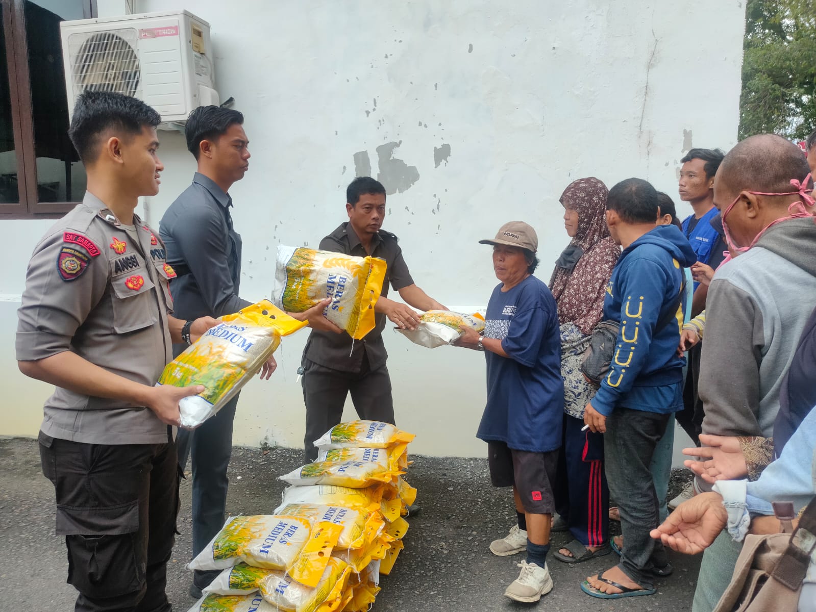 Hasiah Fitri (45) seorang Tunakarya berasal dari kelurahan Pasar Lama, kecamatan Lahat mengungkapkan ke media, dirinya bersama rekan Tunakarya lainnya telah hadir dari jam 11 siang guna mendapatkan sembako berupa beras serta uang tunai dari AKBP Eko Sumaryanto, SIK.M.Si.