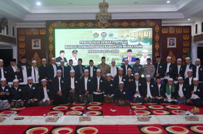 Hal tersebut ditegaskan Pj. Bupati Muara Enim, H. Henky Putrawan, S.Pt., M.Si., M.M., saat menghadiri Pengukuhan Dewan Pimpinan Majelis Ulama Indonesia (MUI) Kabupaten Muara Enim Periode 2025-2030, di Balai Agung Serasan Sekundang (BASS), Kamis malam (13/02).