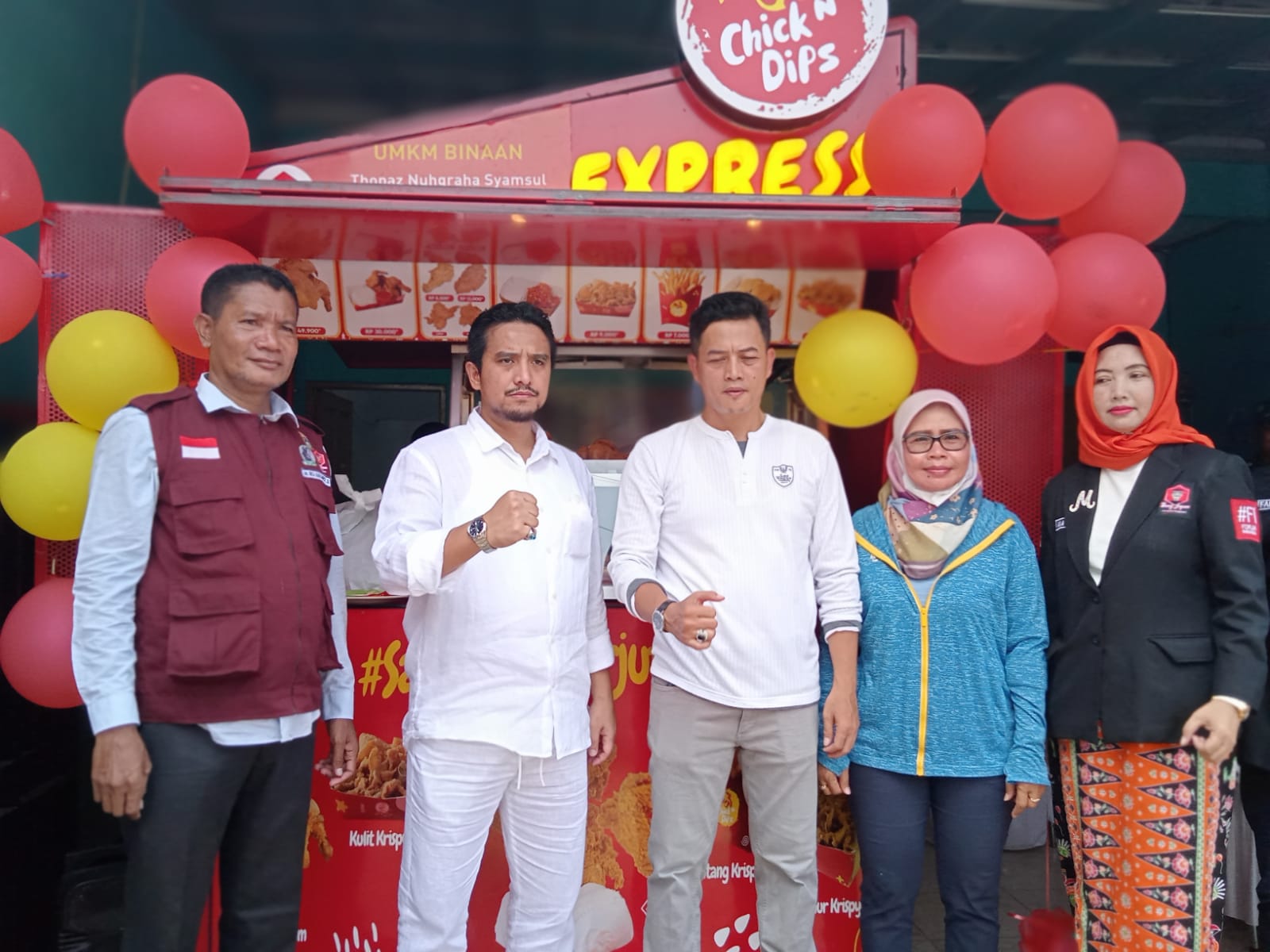 Indosiber.id-Anggota DPRD DKI Jakarta F-Gerindra Thopaz Nuhgraha Syamsul yang juga Wakil Ketua DPD Gerindra DKI Jakarta melalui Tim Thopaz Center memberikan satu unit usaha Chick N Dips Expres kepada salah satu warga di Kelurahan pondok kopi kecamatan duren sawit, Jakarta Timur,Yang juga anggota bang Japar Jakarta timur, sabtu 6 Agustus 2022.
