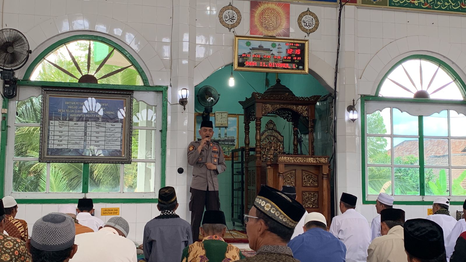 SUMSELONLINE.COM – Usai melaksanakan giat program Jum’at didesa Teluk Lubuk Kecamatan Belimbing Kabupaten Muara Enim bertemu langsung dengan masyarakat tersebut, Kapolsek Gunung Megang Polres Muara Enim Polda Sumsel kembali melakukan Gita safari Jum,’at yang sekaligus menunaikan ibadah solat Jum’at berjamaah di masjid Nurul Arofah Teluk Lubuk Kecamatan Belimbing Kabupaten Muara Enim Jum’at (17/02).
