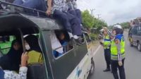 Cegah Kecelakaan Lalulintas, Kasatlantas Dan Personil Turunkan Penumpang Dari Atap Mobil